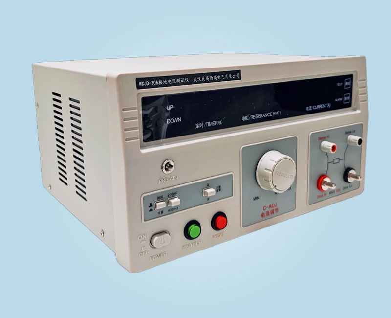 WXJD-30A 接地电阻测试仪适用于测量各种电机、电器、仪器仪表、家用电器等设备的保护接地端和可触及的金属壳体之间的电阻值。它具有测量准确,操作方便等优点。符合 GB4706.1《家用和类似用途电器的安全通用要求》和GB9706.1《医用电气设备安全通用要求》等国家标准中相关条款的试验要求所需的测试设备。